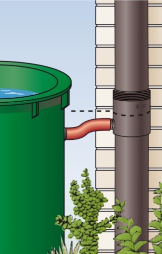 Zbieracz na wodę deszczową działa na zasadzie naczyń połączonych. Zbieracz i zbiornik są połączone ze sobą wężem. Gdy poziom wody osiągnie maksymalną wysokość (wysokość przepełnienia zbiornika), deszczówka spływa przez rurę spustową do kanalizacji. Montaż na rurze spustowej z metalu lub plastiku jest także możliwy już w trakcie użytkowania systemu.
