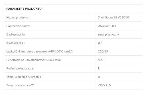 SHELL GADUS S2 V220 00 przeznaczony do układów z centralnym smarowaniem.