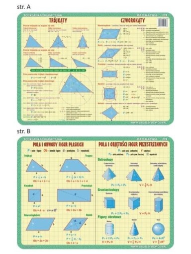 Podkładka edukacyjna. Pola i obwody figur płaskich i przestrzennych, trójkąty, czworokąty