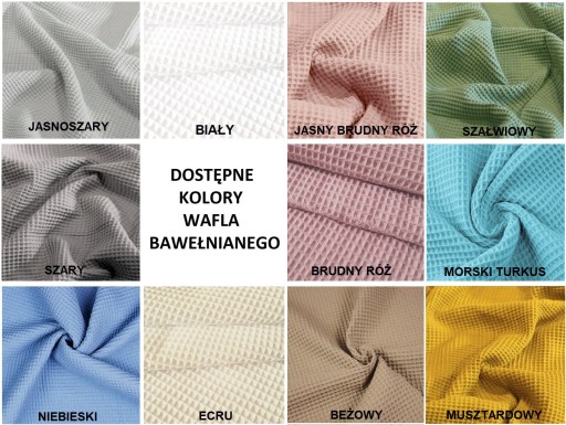 Skład: 100% bawełna, 100% bawełna wafel (235gms/m2 - jest to grubszy wafelek i jedocześnie miększy w dotyku)