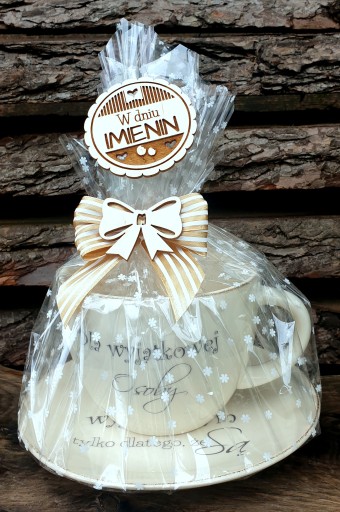 Komplet zapakowany jest w ozdobny celofan, dzięki czemu otrzymujesz gotowy podarunek już do wręczenia.