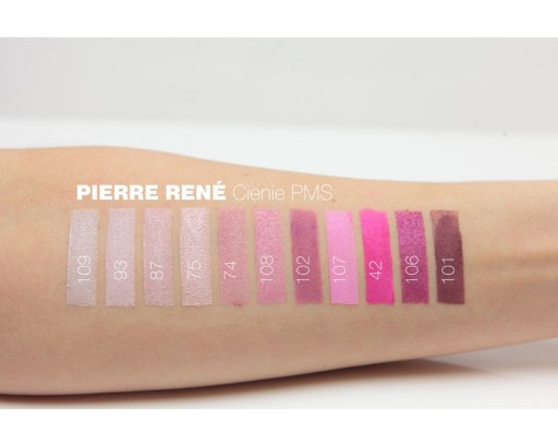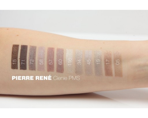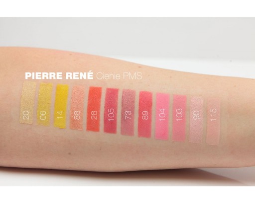 - Cienie w formułach matowych z drobinkami: 01, 03, 04, 07, 11, 22, 23, 27, 29, 42, 52, 53, 55, 57, 84, 69, 83, 98, 101, 103, 104, 105, 107, 111,112,117,118,120,128,