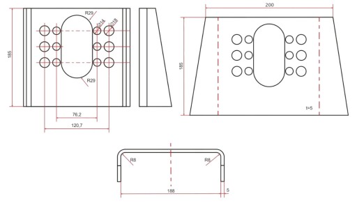 Mocowanie bardzo solidne, ze względu na rozstaw otworów pasuje do większości siłowników hydrauliczno-pneumatycznych.