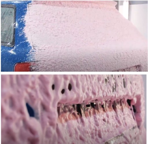 Różowa piana aktywna do myjni automatycznych i samoobsługowych, o intensywnym zapachu i znakomitych właściwościach pieniących