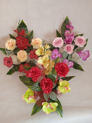 Kompozycje robione są ręcznie stąd może być rozbieżność do ok. 5cm. Ustawienia monitora może wpłynąć na nasycenie koloru.