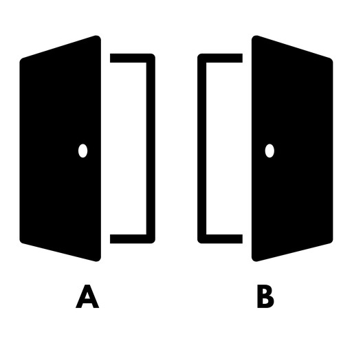 - B Drzwi prawe – zawiasy po prawej stronie, gdy otwieramy drzwi na siebie