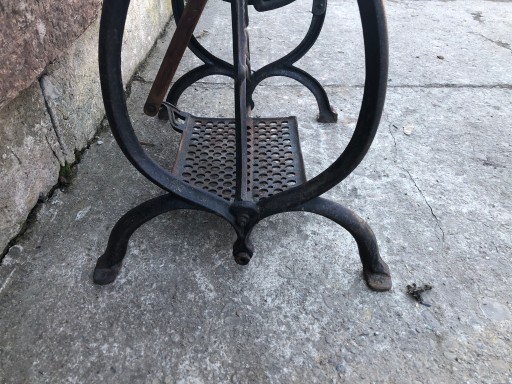 Podstawa od maszyny do szycia stan jak na foto.Podstawa nie popękana.Wymiary:wysokość 72cm,szerokość 53cm.Podstawa do wysyłki zostaje rozkręcona i obłożona pianką żeby podczas transportu nie uległa pęknięciu.Przy zakupie większej ilośći przedmiotów proszę o wiadomośc w celu ustalenia kosztów dostawy.Do zakupionej podstawy podkowa na szczęście gratis.Dwa ostatnie zdjęcia są poglądowe jak wygląda podstawa po piaskowaniu.