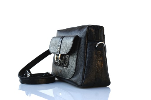 SKÓRZANA TOREBKA LISTONOSZKA DAMSKA CZARNA