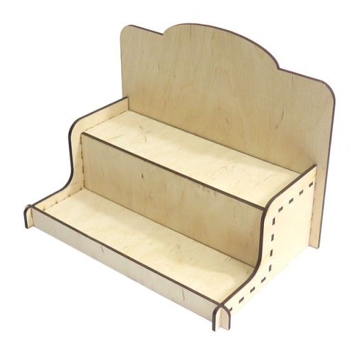 - Stojak o wymiarach: wysokość: 169mm, szerokość: 206mm, głębokość całkowita: 136mm, wysokość pojedynczego schodka: 60mm, głębokość pojedynczego schodka: 60mm