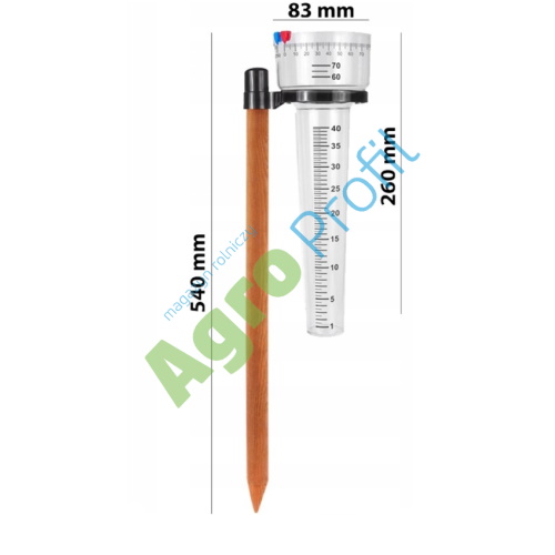 Deszczomierz z sumatorem opadów, posiada skalę do 70 mm/m2 (l/m2). Układ sumatora pozwala rejestrować łączny opad do 250 mm/m2. Dwa wskaźniki rejestrują dzienne i miesięczne opady. Zestaw zawiera deszczomierz, uchwyt do montażu na kij, impregnowany kij, wskaźniki sumatora oraz opakowanie (karton).