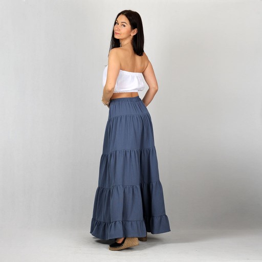МУСЛИН СИНИЙ длинная юбка летняя из хлопковой резины