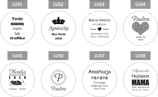 - wzór ( dostępny w galerii ) lub dowolny tekst ( Państwa propozycja )
