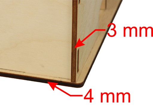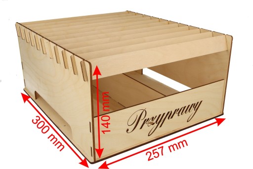 Produkt wykonany jest z wysokiej jakości sklejki liściastej - boki grubości 3 mm, natomiast dno przyprawnika, dla utrzymania lepszej stabilności, wykonano ze sklejki grubości 4 mm.
