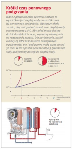 - stała dostępność i stabilna temperatura ciepłej wody nawet w przypadku kilku poborów jednocześnie
