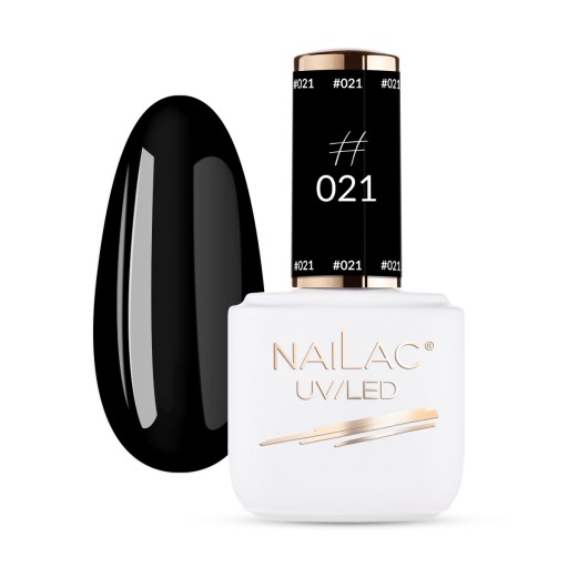 Kolor lakieru hybrydowego NaiLac #021: głęboka, bardzo intensywna czerń