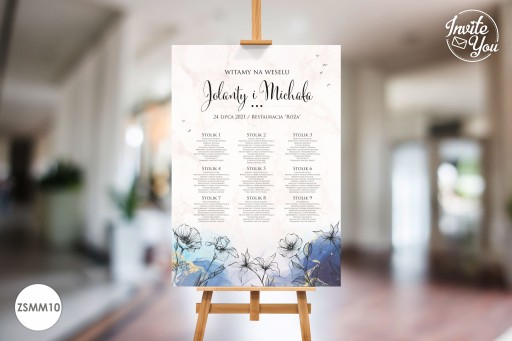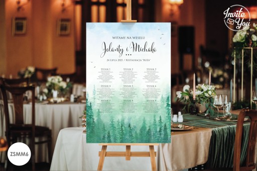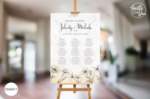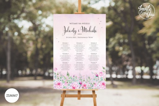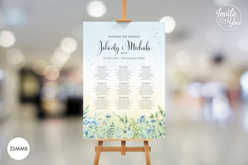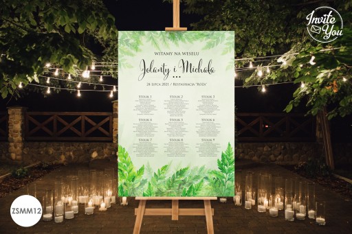 Eleganckie, kolorowe plansze z listą gości. Na planszy znajduje się rozpiska gości wraz z przypisanymi stolikami. Plansza z listą gości może być ustawiona przy wejściu do sali ułatwiając jednocześnie gościom odnalezienie swojego miejsca na sali.