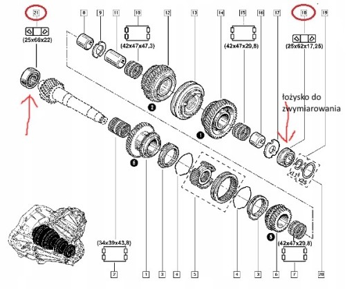 - 2 łożyska wybieraka oraz tulejka