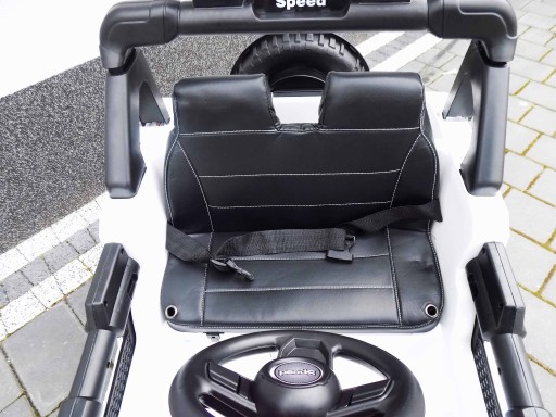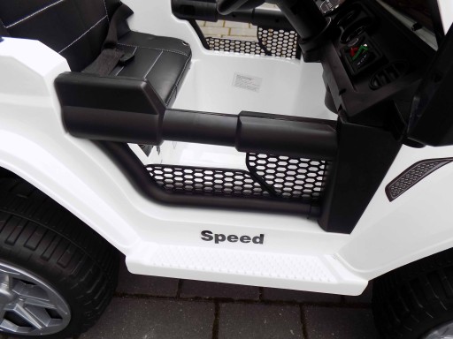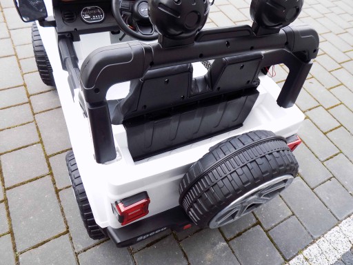 JEEP 4X4 zasilany na 12 V z napędem na cztery koła zachwyci nie jednego przyszłego kierowcę. Dzięki zastosowanym 4 silnikom każdy 35W, auto jeździ po nierównym terenie bez żadnych problemów.