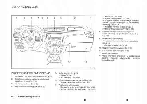 Instrukcja obsługi Nissana zawiera wszystkie poziomy wyposażenia oraz przydatne informacje dotyczące wydajnego i bezpiecznego użytkowania pojazdu, takie jak: B. - Kierunkowskazy, kierunkowskazy, otwieranie i zamykanie - Oświetlenie i widoczność, siedzenia, schowki, ogrzewanie, wentylacja, klimatyzacja - Jazda, wskazówki dotyczące obsługi, konserwacja pojazdu - Poziomy płynów, sprawdzanie i uzupełnianie, postępowanie w sytuacjach awaryjnych, wymiana kół, bezpieczniki , Wymiana żarówek - Dane techniczne... i wiele innych rzeczy, które dają podróżującym poczucie bezpieczeństwa i komfortu.