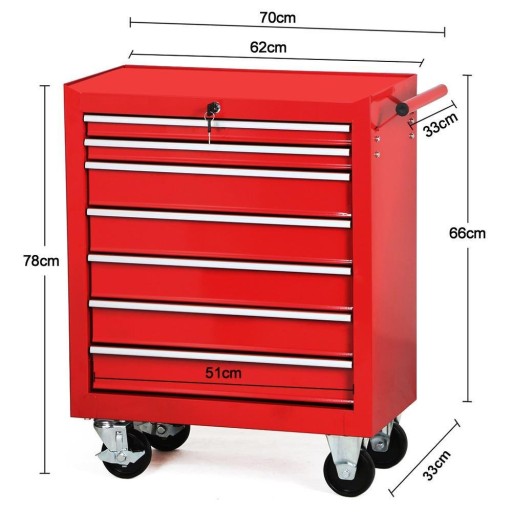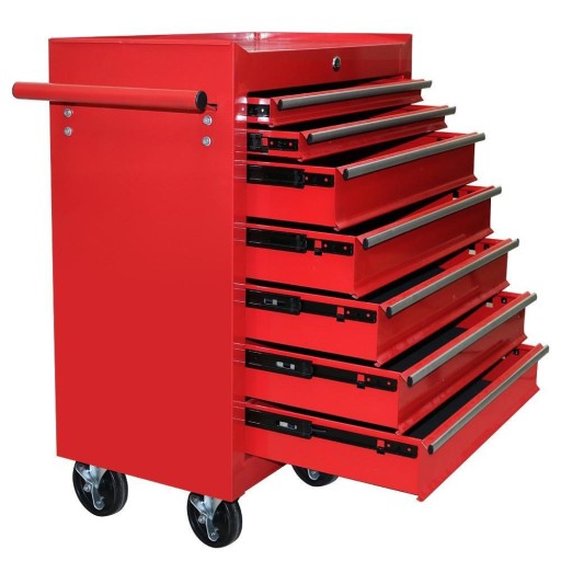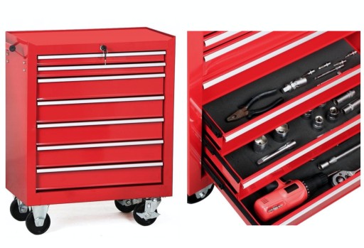 Szafka narzędziowa to sprzęt potrzebny w każdym warsztacie samochodowym , garażu czy domu. Szafka posiada 5 głębokich szuflad oraz 2 płytkie szuflady wyłożone antypoślizgową matą.Produkt został wykonany z najwyższej jakości stali a krawędzie zewnętrzne jak i wewnętrzne zostały podwójnie wzmocnione.Szafka stoi na 4 mocnych kółkach 2 stałych oraz 2 skrętnych z blokadami.Produkt wysokiej jakości zapewni CI bezproblemowe użytkowanie