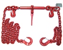 - Odciąg łańcuchowy klasy 8 składający się z zestawu elementów: napinacza grzechotkowego, oraz zintegrowanego łańcucha zakończonego dwoma hakami sworzniowymi z zab., do zabezpieczania towarów w transporcie.