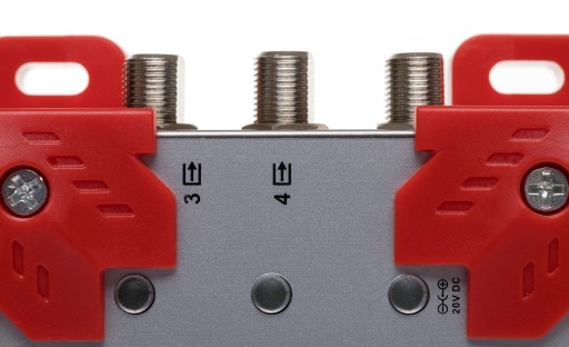 W prawej i lewej stronie multiswitch posiada 4 wyjściado podłączenia maksymalnie 4 tunerów satelitarnych czy naziemnych. Jeśli odbiornik posiada funkcję nagrywania to należy podłączyć do niego 2 przewody z multiswitcha. Wówczas możemy podpiąć maksymalnie do 2 takich odbiorników.