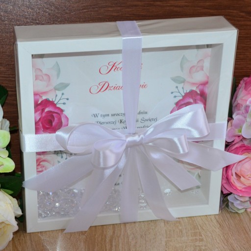 - W środku kolorowy nadruk personalizowany oraz kryształki w formie diamencików, które nadają elegancji i blasku
