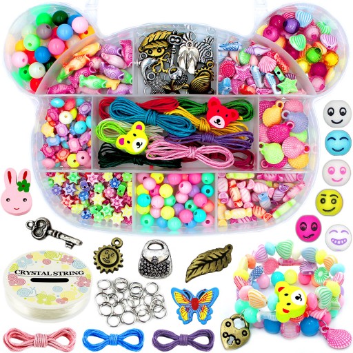 Zestaw zawiera wszystkie potrzebne elementy do wykonania pięknych bransoletek, takie jak: