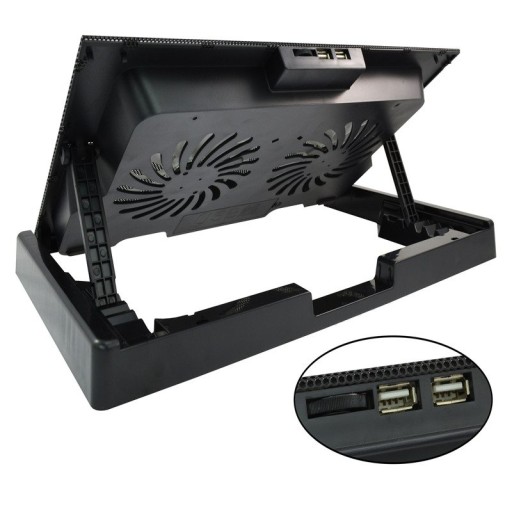 AABCOOLING NC80 Czarna Podstawka pod laptopa to już kolejna podstawka od AABCOOLING, która posiada dwa wydajne i ciche wentylatory! Idealna dla dużych laptopów o panoramicznych matrycach aż do 17 cali. Waga 820 g zapewnia stabilną podstawę pod laptopa, a obrotowy potencjometr umożliwia jednoczesną regulację wentylatorów. Wentylatory pobierają chłodne powietrze spod podstawki i kieruje je na powierzchnie laptopa, zapewnia bardzo niską emisję hałasu podczas przepływu strumienia powietrza. Hydrauliczne łożyska pracują bardzo cicho. Przy ustawieniu najniższych obrotów wentylatorów hałas jest praktycznie niesłyszalny (tryb SUPER SILENT). Dolna część podstawy posiada pięciostopniową regulację kąta nachylenia, tak aby zapewnić jak największą ergonomię pracy. Dodatkowym atutem są niewielkie nóżki zwiększające kąt nachylenia w pozycji płaskiej, antywibracyjne nóżki oraz blokady zabezpieczające przed zsuwaniem się laptopa.