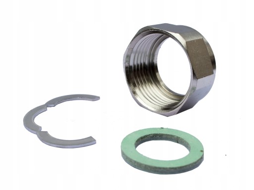 Nakrętka GW 1" z płaską uszczelką klingerit i pierścieniem stalowym. Element systemowy instalacji rur ze stali nierdzewnej np. FLEXO, Heatpex, GEBO.