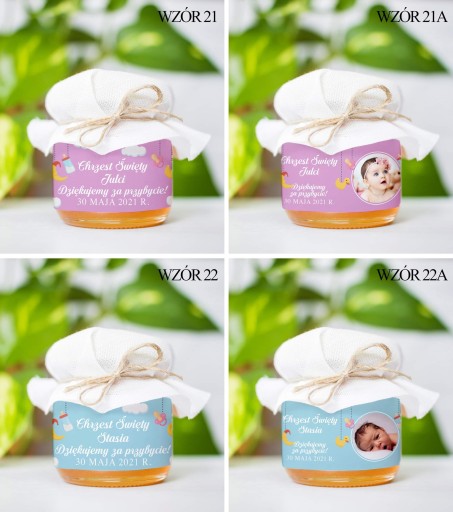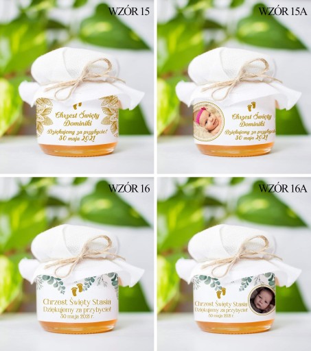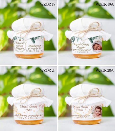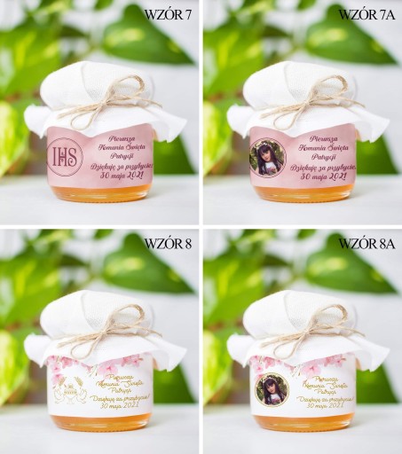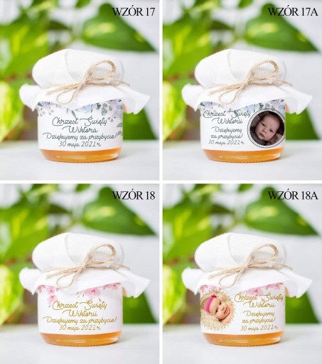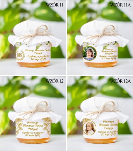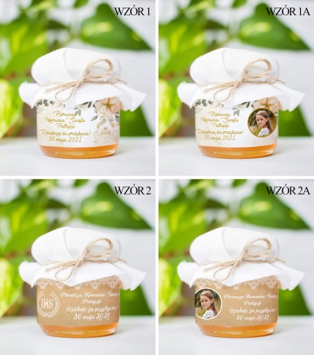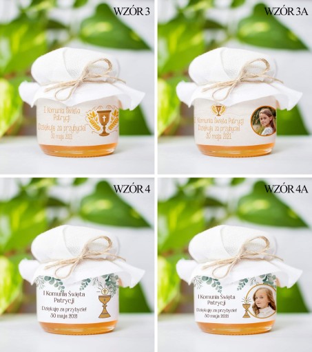 Miodek w słoiczku z Twoim zdjęciem i napisem na etykiecie to idealne Podziękowanie dla Gości z okazji Komunii, Chrztu lub Ślubu. Cena za 1 szt.