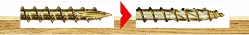 - Specjalne karby tnące na gwincie przecinają włókna struktury drewna podczas wkręcania.