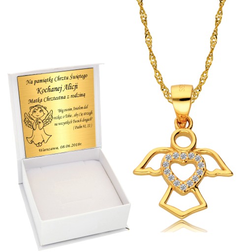 Золотая цепочка 925 пробы, медальон ангела с гравировкой