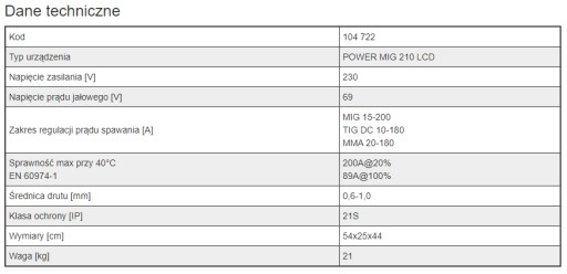 Półautomat spawalniczy POWER MIG 210 LCD to urządzenie zasilane jednofazowo, którego sterowanie jest mikroprocesorowe. Ten produkt został stworzony w myśl technologii inwertorowej IGBT, a jego zadaniem jest spawanie kilkoma, konkretnymi metodami. Można z nich wyróżnić następujące: spawanie elektrodami otulonymi prądem stałym (DC), spawanie metodą MIG/MAG (w osłonie gazu), bądź FLUX (bez osłony gazu), a także spawanie TIG Lift prądem stałym (DC) ze stykowym zajarzeniem łuku i lutospawania.