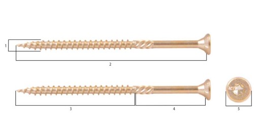 - Wkręt konstrukcyjny z łbem stożkowym i gniazdem do połączeń elementów drewnianych i drewnopochodnych w konstrukcjach drewnianych.