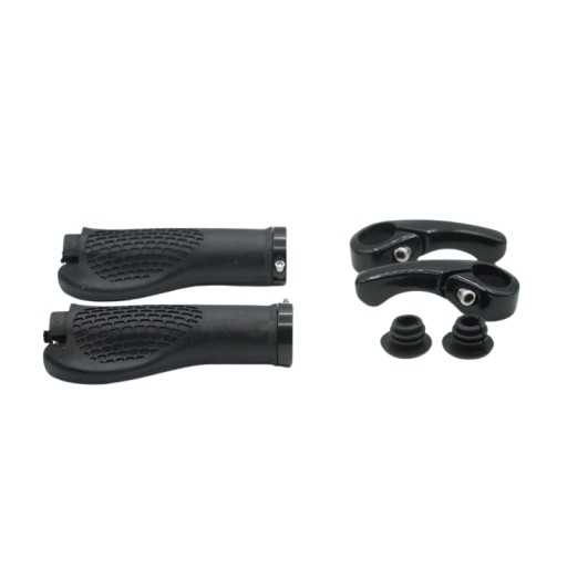 Anatomicznie dopasowane chwyty kierownicy wykonane z gumy dla uzyskania unikalnego uczucia miękkości, przy jednoczesnym utrzymaniu trwałości. Unikalny wzór powierzchni chwytów oraz ergonomiczny kształt zapewniają wygodną pozycję, absorpcję wstrząsów oraz pewność chwytu. Wyposażone w aluminiowe skręcane klamry oraz korki.