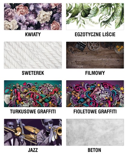 Oto zestawienie dostępnych kolorów i wzorów podkładek. Jeśli nic nie wpiszesz w uwagach podczas składania zamówienia - wyślemy kolor z aukcji.