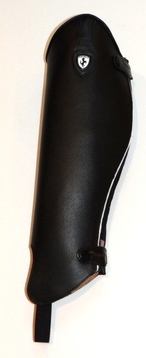 Czapsy wykonane ze skóry naturalnej bydlęcej,licowej gat.1 z tyłu wstawka z elastycznej gumy(rozciągliwość do 1cm) zapinane na zamek, góra czapsów lamowana skórą.Ozdobne dodatki w kolorze białym.