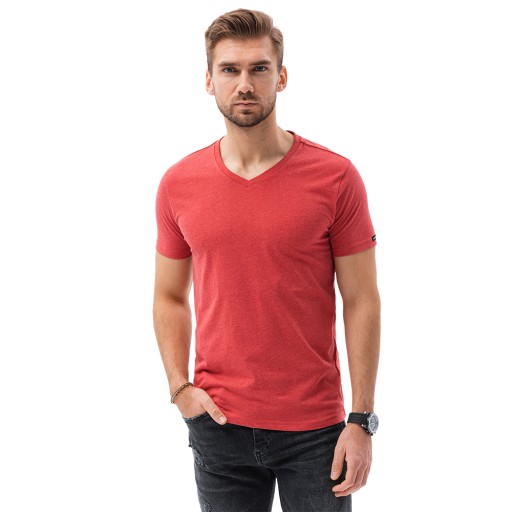 T-shirt męski basic S1369 czerwony melanż XXL