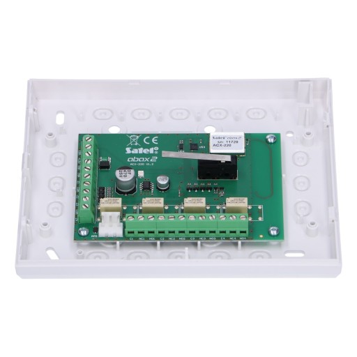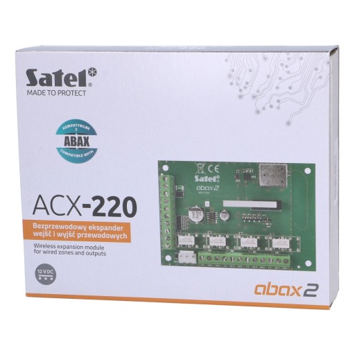 Moduł ACX-220 umożliwia stosowanie urządzeń przewodowych (m.in. czujek i sygnalizatorów) w systemie bezprzewodowym ABAX 2/ABAX. Wyposażony jest w 4 programowalne wejścia – obsługujące czujki przewodowe typu NO i NC oraz konfiguracje EOL, 2 EOL – a także 4 programowalne wyjścia przekaźnikowe.