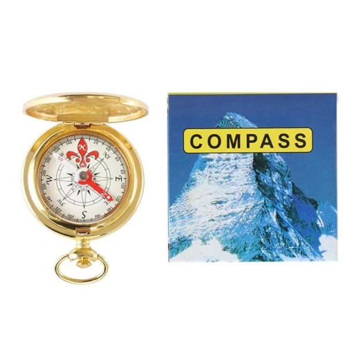 ZŁOTY KOMPAS KIESZONKOWY TURYSTYCZNY + ŁAŃCUSZEK KULKOWY 80cm w Zestawie