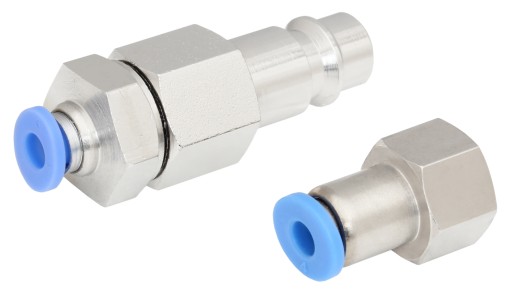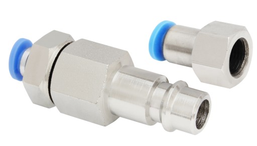 W celu zamontowania przyłącza wciskanego należy odciąć z jednej strony na wężu oryginalne przyłącze na gwint M5, a następnie wcisnąć odpowiednią złączkę pasującą do urządzenia.