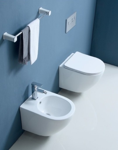 Muszla i bidet VERA wykonane są z ceramiki sanitarnej w białym kolorze. Kształt zestawu pozwala na optymalne wykorzystanie przestrzeni, a innowacyjny systemem spłukiwania zapewnia funkcjonalność. W komplecie deska wolnoopadająca duroplast z metalowymi zawiasami, z funkcją szybkiego wypięcia.