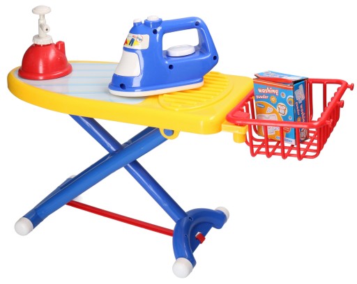 W zestawie również żelazko, puste pudełko (atrapa proszku do prania),