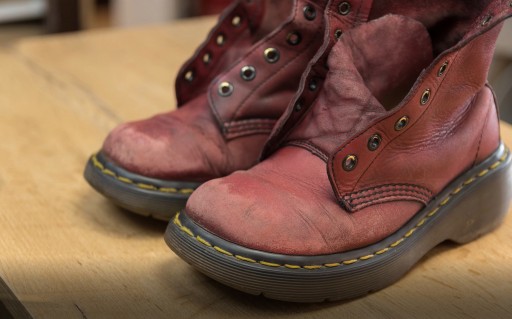 Oto przykłady pomalowanych butów na kolor bordowy.