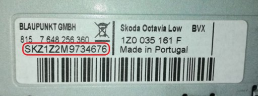 Numer seryjny składa się z SKZ i 11 znaków - przykład SKZ1Z2K3428173, SKZAZ2N0046732, SKZ2Z3G3983754, SKZ4Z2M7384021