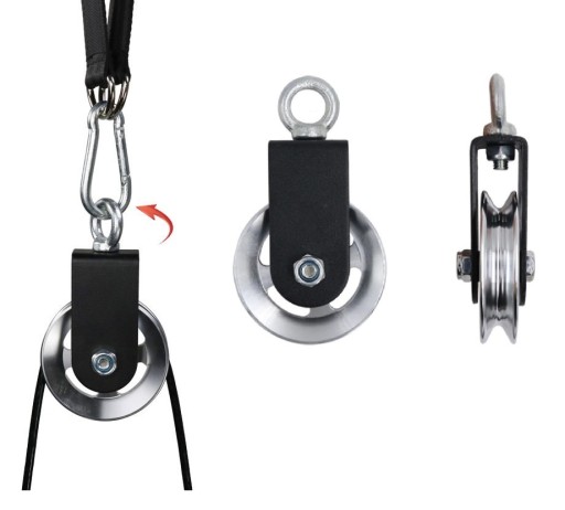 - koło pasowe – składa się ze stali, łożyska kulkowego oraz stalowej rolki, dzięki którym linka zachowuje swoją pozycję i nie skręca się, a sam wyciąg do ćwiczeń jest trwały i cichy