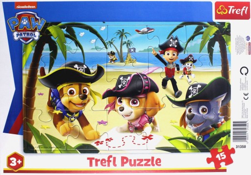 Pomysłowe puzzle dla młodszych dzieci z obrazkiem przedstawiającym bohaterów filmu animowanego Psi Patrol.
