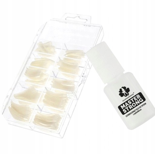 Zestaw tipsy naturalne mleczne NT58 długa kieszonka 100 sztuk w kasetce i klej do tipsów Allepaznokcie 10g zawiera: