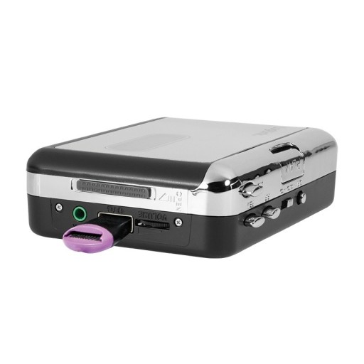 - Konwertuje kasetę bezpośrednio na format MP3 na dysk flash USB lub czytnik kart USB z kartą SD / microSD